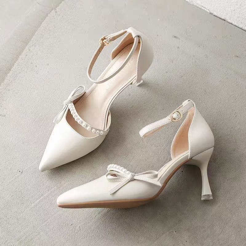 White high heels for women summer new style comfortable and versatile single strap niche shoes French stiletto